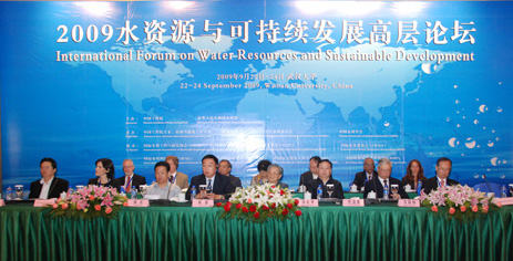 由中国工程院和水利部联合主办的“2009水资源与可持续发展高层论坛”于2009年9月22日至24日在武汉隆重举行。本次论坛由中国工程院土木、水利与建筑工程学部、武汉大学、中国水利学会、长江水利委员会共同承办,国际水资源协会(IWRA)、国际灌排委员会(ICID)、国际水利工程与研究协会(IAHR)、国际水管理研究院(IWMI)、美国俄亥俄州立大学、中国水力发电工程学会以及中国欧盟流域管理项目等组织和机构协办,武汉大学具体组织。全国政协原副主席、中国工程院院士钱正英,水利部部长陈雷,湖北省委书记罗清泉,湖北省委副书记、武汉市委书记杨松,湖北省副省长郭生练,水利部原副部长、中国水利学会理事长敬正书,中国工程院原副院长沈国舫院士,水利部长江水利委员会主任蔡其华,国际水资源协会(IWRA)主席Cecilia Tortajada,国际灌排委员会(ICID)秘书长M. Gopalakrishnan,国际水利工程与研究协会(IAHR)主席玉井信行,国际水管理研究院(IWMI)副院长David Molden等出席了会议。中国工程院韩其为、崔俊芝、王浩、雷志栋、茆智、曹楚生、郑守仁、张蔚榛、周君亮、丁一汇、张勇传等13位院士出席本次大会并做了报告。本次会议共吸引了来自美国、日本、俄罗斯、澳大利亚、欧盟、印度以及中国等十多个国家的300余名代表,其中国外代表50余人,国外院士共8名,8名国外院士分别是美国科学院院士、劳伦斯国家实验室教授Donald J. Depaolo,美国科学院院士、加州大学圣塔芭芭拉分校教授Tom Dunne,美国国家工程院院士、北卡罗来纳州立大学教授Wayne Skaggs,俄罗斯科学院院士、莫斯科国立大学教授Alexander Kislov,澳大利亚技术科学与工程院院士、莫纳西大学教授Michael Manton,英国皇家工程院院士、卡迪夫大学水环境研究中心教授Roger A. Falconer,挪威科学院院士、奥斯陆大学地球物理学系教授Lars Gottschalk和第三世界水管理中心(墨西哥)院士Asit K. Biswas教授。