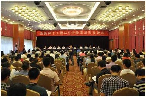 2012年9月27-28日,由中国工程院农业学部和中国水产科学研究院主办,中国水产科学研究院黄海水产研究所、淡水渔业研究中心和国家鲆鲽类、大宗淡水鱼、罗非鱼产业技术研发中心共同承办的“鱼类种子工程与可持续发展”科技论坛在青岛召开。中国工程院雷霁霖院士担任大会执行主席,中国工程院旭日干副院长、农业部张桃林副部长出席大会开幕式并致辞。中国工程院林浩然院士、麦康森院士、英国鱼类养殖专家Bari Howell博士、加拿大鱼类营养专家Santosh P. Lall博士以及来自国内30多家科研、教学单位和企业的280多名专家学者参加了本次论坛。