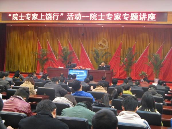 上饶市委、市政府十分重视此次活动,市委张跃岭副书记亲自主持“院士专家专题讲座”,200余名来自政府部门和企业相关人员听取了讲座。金涌院士做了题为“生态文明与循环经济”的报告,报告从“生态文明”的概念和内涵谈起,结合“十八大”报告的精神,对生态文明建设进行了深入解读。金涌院士结合国家出台的鼓励循环经济发展的相关政策,对上饶市循环经济的发展提出了相应的建议。向兰教授、阚成友教授、叶树峰研究员、胡山鹰教授等专家分别做了题为“矿产资源高值利用——纳米/晶须材料”、“水性聚合物及相关技术简介”、“节能减排新技术研究进展”、“循环经济‘十二五’工作”的讲座,从专业技术和国家政策引导的角度,为上饶循环经济的发展提供借鉴思路。
