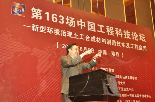 2013年6月6-7日,第163场中国工程科技论坛“新型环境治理土工合成材料制造技术及工程应用”在山东省陵县召开。本次论坛由中国工程院主办,中国工程院环境与轻纺工程学部、东华大学、上海大学、上海科学技术开发交流中心、上海市中国工程院院士咨询与学术活动中心、中共陵县委员会及陵县人民政府共同承办。中国工程院蒋士成、周翔、孙晋良、郁铭芳、姚穆院士和有关科研院所、检测机构、重大工程用户及相关协会的专家代表出席了本次论坛。参加论坛总人数达到200余人,论文集共收录16篇论文。