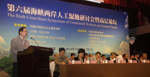 2014年10月27日至11月1日,由中国工程院环境与轻纺工程学部、中国科学院水生生物研究所、(台湾)中山大学联合主办,杭州师范大学承办的第六届海峡两岸人工湿地研讨会暨高层论坛在杭州举行。中国工程院环境与轻纺工程学部侯立安院士、张偲院士,中国科学院匡廷云院士,台湾中央大学特聘教授、俄罗斯联邦工程科学院刘说安院士等200多位来自海峡两岸生态与环境相关领域的院士、专家、学者和工程技术人员参加会议,围绕“两岸人工湿地科技合作与城市水体生态景观建设”展开研讨。中国科学院水生生物研究所徐旭东副所长主持开幕式,张偲院士代表中国工程院环境与轻纺工程学部致辞。