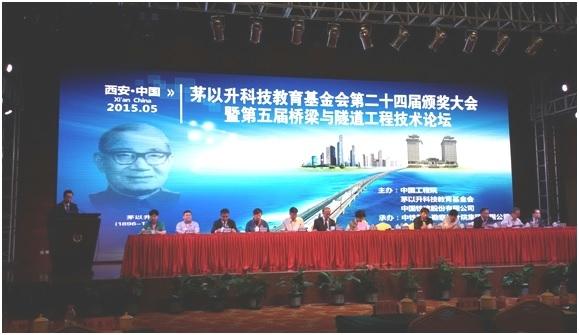 2015年5月26日,由中国工程院、北京茅以升科技教育基金会、中国铁建股份有限公司共同主办,中铁第一勘察设计院集团有限公司承办的“茅以升科技教育基金会第二十四届颁奖大会暨第五届桥梁与隧道工程技术论坛”在西安召开。第十一届全国政协副主席、茅以升基金会主任、中国科学院王志珍院士,中国工程院孙永福、秦顺全、何华武、王景全、梁文灏、聂建国院士,中国科学院吴硕贤院士,中国铁建股份有限公司孟凤朝董事长,茅以升科技教育基金会茅玉麟秘书长出席了26日上午举行的“茅以升科技教育基金会第二十四届颁奖大会”,并为获奖的专家和学生颁奖。桥隧领域近300位专家学者出席了此次会议。