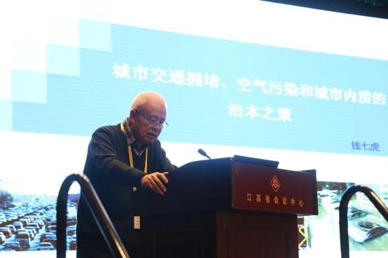 缪昌文院士主持了27日上午的开幕式及大会特邀报告。钱七虎院士首先做了《城市交通拥堵、空气污染和城市内涝的治本之策》的主旨报告。我国正处于城镇化、机动化的高速发展时期,城市规模的不断扩大、人口的快速集聚以及汽车保有量的迅猛增长,诱发了道路交通拥堵、空气污染等诸多问题,已成为建设和谐城市的最强不和谐音符。解决这些问题,必须从城市交通需求与交通供给的失衡、工业污染与汽车尾气污染入手。钱院士提出:要根据客观资源和生态环境等约束条件来抑制城市规模,要实行面向交通的城市规划模式,推进由中心城市与卫星城市相结合的多中心城市圈建设;要创新转变交通方式,大力开发城市地下空间,以提高城市交通供给能力;治理工业污染要与治理交通拥堵和汽车尾气污染相结合,科学治理城市空气污染。此外,钱院士还根据城市内涝频发的内因和外因,指出要通过建设海绵城市和地下排水通道进行防治城市内涝。