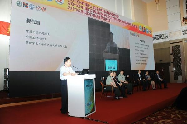 2016年6月17日,由中国工程院医药卫生学部主办,原沈阳军区总医院全军心血管病研究所承办的中国工程院2016医学前沿论坛——心血管疾病整合与转化医学新进展工程前沿技术研讨会在辽宁省沈阳市成功召开。中国工程院副院长樊代明以及杨宝峰、刘德培、张运、于金明、韩雅玲5位工程院院士和中国科学院院士葛均波,中国医师协会常务副会长兼秘书长杨明、沈阳军区联勤部陈兆明副部长、辽宁省卫生与计划生育委员会副主任陈金玉、中国医师协会心血管内科分会会长马长生、澳大利亚墨尔本大学内科学教授林延龄、武汉大学心血管病研究所副所长李红良教授,沈阳军区总医院院长侯明晓、政委杨光辉以及来自基层医疗一线和医学院校研究生等1200余名专家和代表参加了研讨交流会。