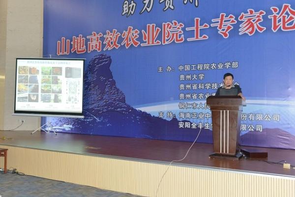 宋宝安院士结合贵州实际作了题为《贵州山地高效农业绿色发展的思考》的学术报告。他从贵州山地高效农业发展的优势和短板入手,指出贵州土地资源保护较好,无较大的生活污染、无重金属污染,适宜发展山地农业;目前的症结是产业布局乱,规模不够、标准化程度不高;解决之道是加强农业科技创新能力和推广能力,创新农业成果推广体制,积极培育精准农业、培育壮大服务组织、加速贵州农业现代化进程,加强大数据在农业信息服务和食品安全领域应用。