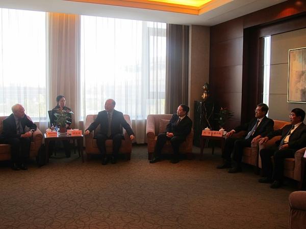 10月29日上午,徐匡迪名誉主席、周济院长、潘云鹤常务副院长、谢克昌副院长在北京会议中心亲切会见了到访的美国麻省理工学院(MIT)副校长克劳德•卡尼萨雷斯(Claude Canizares)一行,双方就进一步推动未来科技创新合作交换了意见。