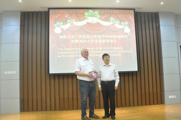 6月4日-6日,中国工程院外籍院士埃里克•弗斯贝格 (Eric Forssberg) 教授访问郑州大学,期间受聘为郑州大学客座教授。聘任仪式上,中国工程院院士、郑州大学校长刘炯天为埃里克•弗斯贝格教授颁发客座教授聘书。