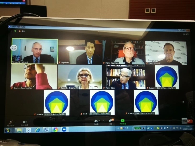 10月25日,2020世界卫生峰会召开小组会议,讨论《控制新冠肺炎疫情需要研究和创新》及相关事宜,主席为德国马克斯·普朗克感染生物学研究所斯特凡·考夫曼,100余人在线同时参会。发言人包括:世界卫生组织首席科学家SoumyaSwaminathan博士作了题为《科学与流行病》的报告;美国国家医学院院长Victor J.Dzau教授作了题为《混乱的世界:全球备灾监测委员会2020年报告》的报告;中国工程院原副院长、中国工程院院士、国际科学院联合组织主席刘德培教授的报告题目是《中国工程院院士在抗击新冠肺炎疫情中作出的贡献》;强生公司全球公共卫生、全球研发负责人RuxandraDraghia-Akli博士的报告题目是《强生公司多管齐下应对新冠肺炎疫情》;流行病防范创新联盟、英国首席执行官Richard Hatchett博士的报告题目是《新冠肺炎疫苗实施计划和疫苗多边主义》;比尔和梅林达·盖茨基金会全球健康事业部总裁Trevor Mundel博士的报告题目是《开创全球健康伙伴关系的新途径》。